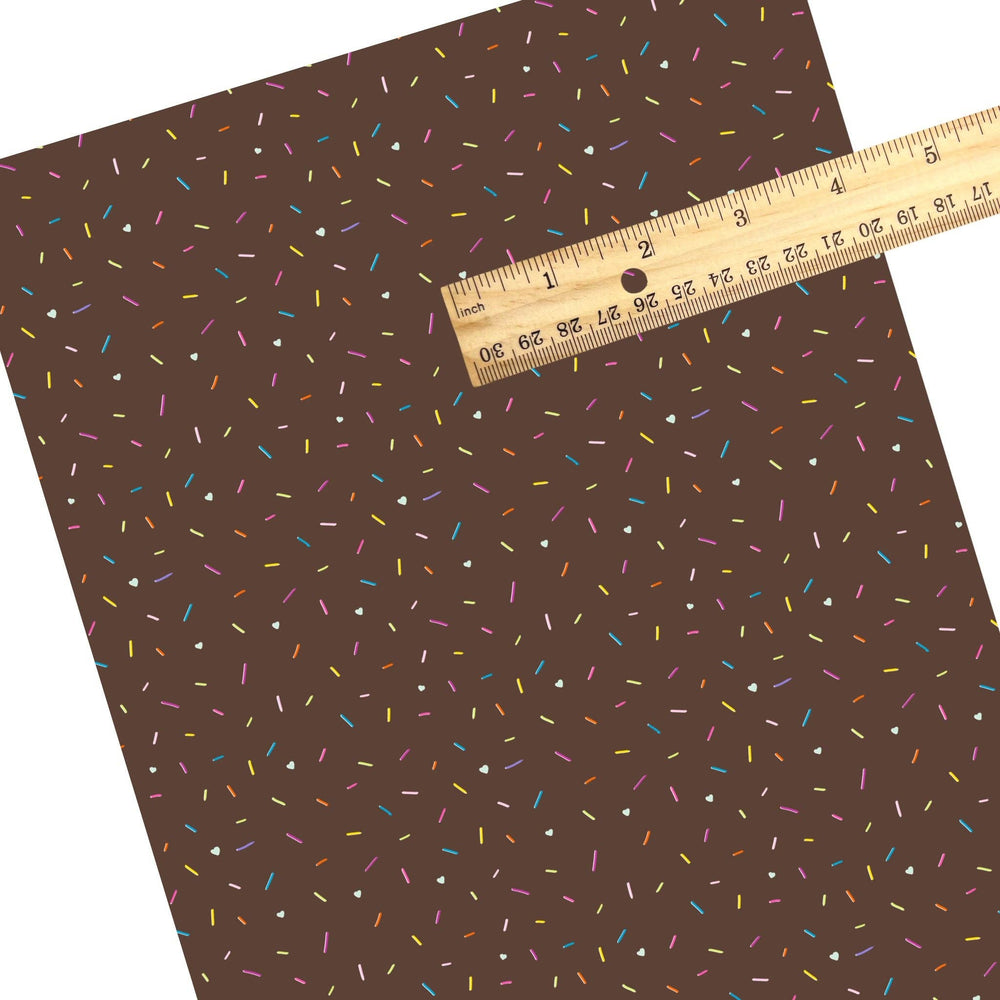 These ice cream sprinkles faux leather sheets contain the following design elements: sprinkles on chocolate ice cream. Our CPSIA compliant faux leather sheets or rolls can be used for all types of crafting projects.