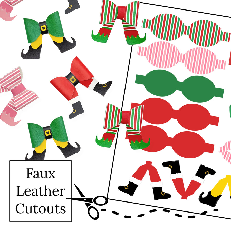 These Christmas faux leather sheets are ready to cut and assemble for many craft projects. These patterned sheets can be used to make a hair bow, headband, banner, photo props, scrapbook, party or classroom decorations, bulletin board trim or anything creative! You will receive a 5 cutouts based on your selection of either assorted patterns or all of one particular pattern. The Christmas are printed on our CPSIA compliant faux leather sheets and will arrive to you uncut and will need to assembled and embellished depending on your craft project. Any additional items shown are sold separately.