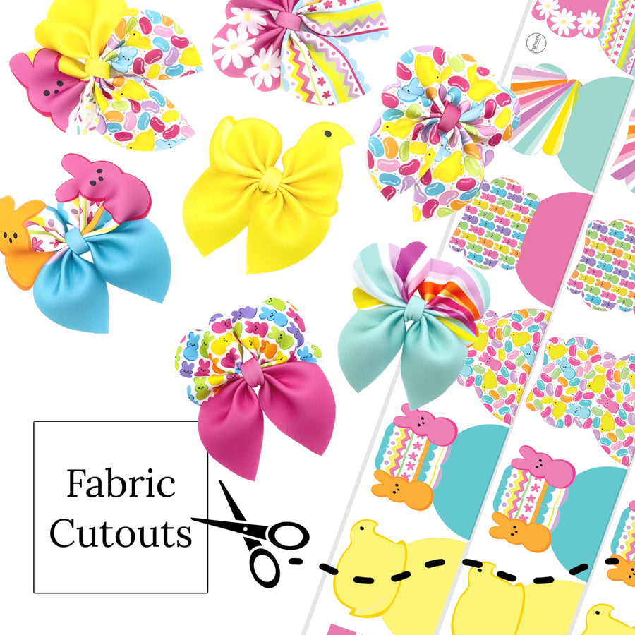 These soft Easter themed neoprene bubble bows feature bright marshmallow bunnies, chicks and flowers and can be quickly cut and assembled for a trendy bow. They're ideal for easy at-home styling, individual use, or even resale. Get creative and add a splash of color to your look with these low-maintenance bows – perfect for this upcoming Spring and Easter!