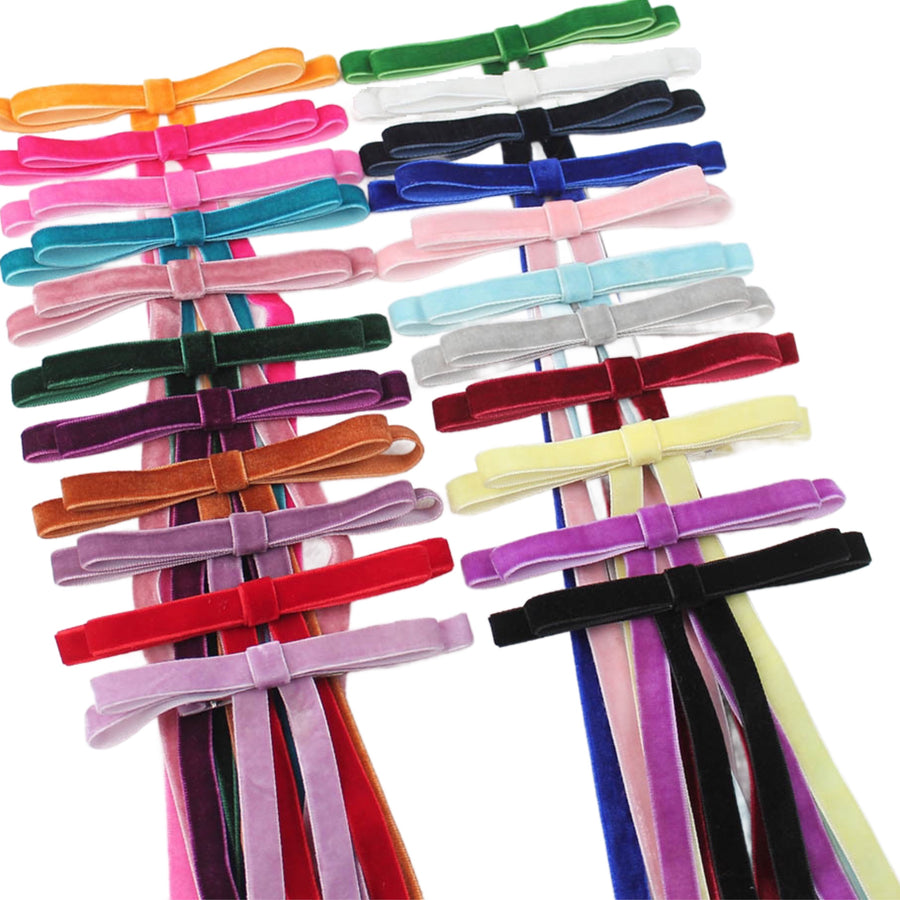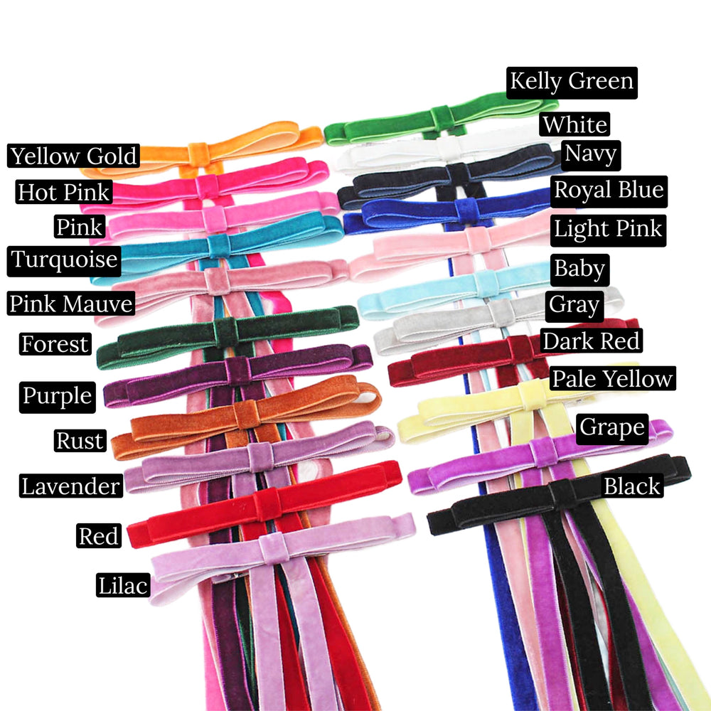 Colorful Dainty Velvet Long Tail Hair Bow w/Clip.