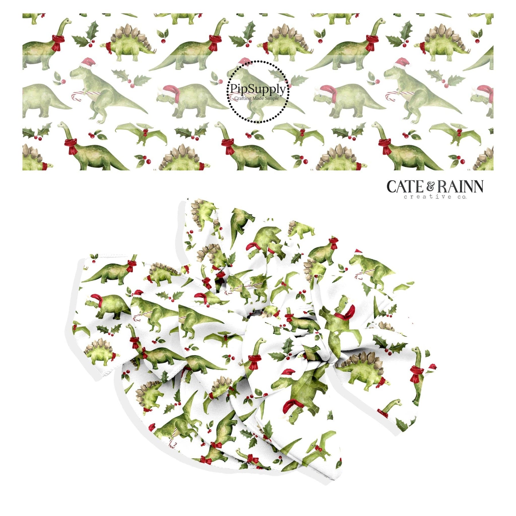 Green Christmas Dinosaur Bow Strips