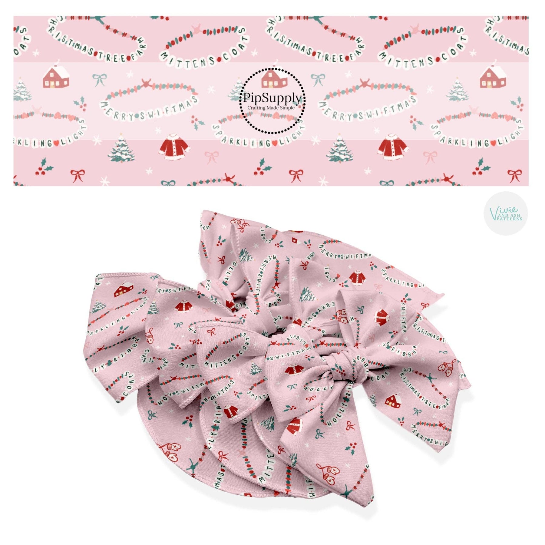 These Christmas themed no sew bow strips can be easily tied and attached to a clip for a finished hair bow. These fun patterned bow strips are great for personal use or to sell. These bow strips feature the following design elements: Christmas friendship bracelets on pink.