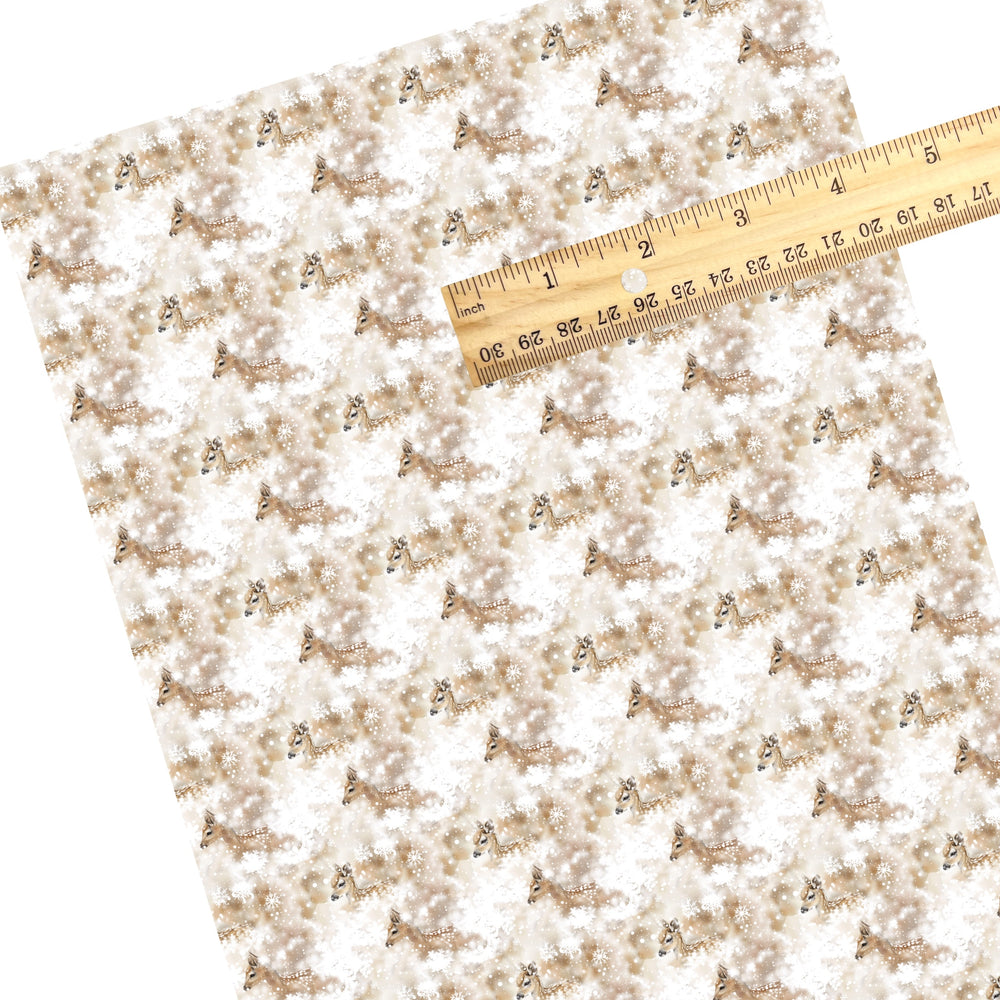 These deer snowflake faux leather sheets contain the following design elements: white winter deer and snowflakes. Our CPSIA compliant faux leather sheets or rolls can be used for all types of crafting projects.
