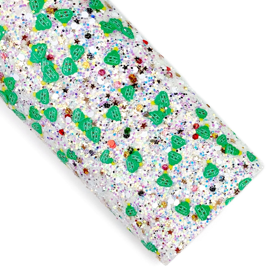Hand sprinkled Christmas tree clay pieces an icy clear iridescent glitter base with little glitter stars throughout. This chunky glitter is the talk of any Christmas town!