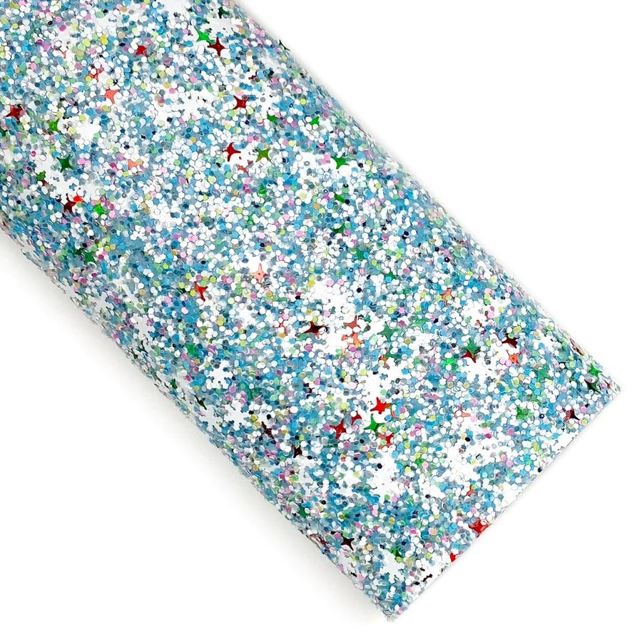 Hand sprinkled snowflake pieces on chunky glitter! The sweetest winter blue color perfect for your holiday and winter themed projects!