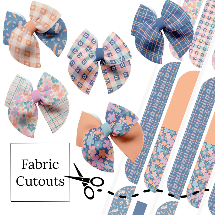 These bunny and colorful grid Easter and Spring themed neoprene sailor bows can be quickly cut and assembled for a trendy seasonal bow. They're ideal for easy at-home styling, individual use, or even resale. These bows contain designs with rabbits, carrots, grid patterns and flowers. Get creative and add a splash of color to your look with these low-maintenance bows – perfect for this upcoming Spring and Easter!
