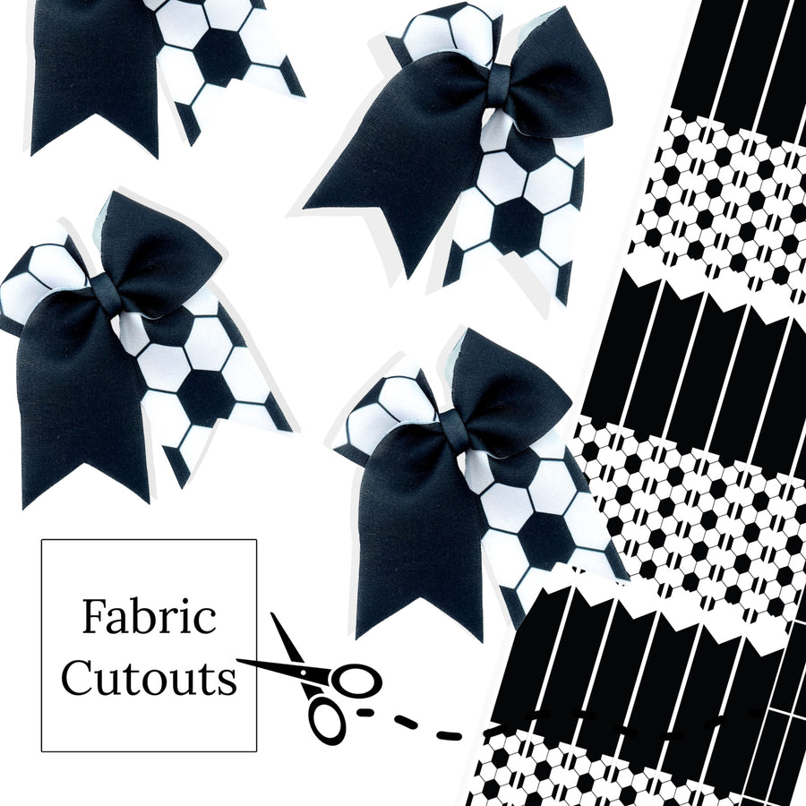 These high-quality, soccer themed neoprene sailor bows can be quickly cut and assembled for a trendy sports season bow. They're ideal for easy at-home styling, individual use, or even resale. These bows contain soccer prints and other soccer elements. Get creative and add a splash of color to your look with these low-maintenance bows – perfect for this upcoming sports season!