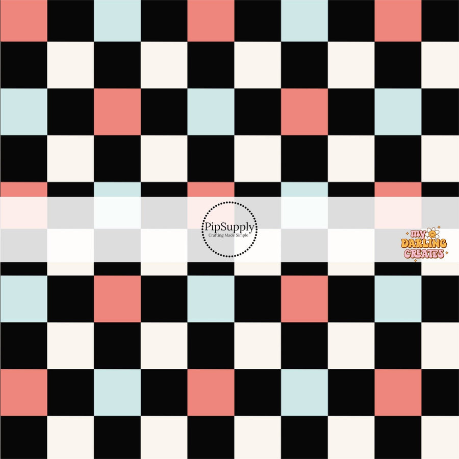 Checkered black fabric by the yard features a simple cool patriotic pattern. This fun Fourth of July fabric can be used for all your sewing and crafting needs!