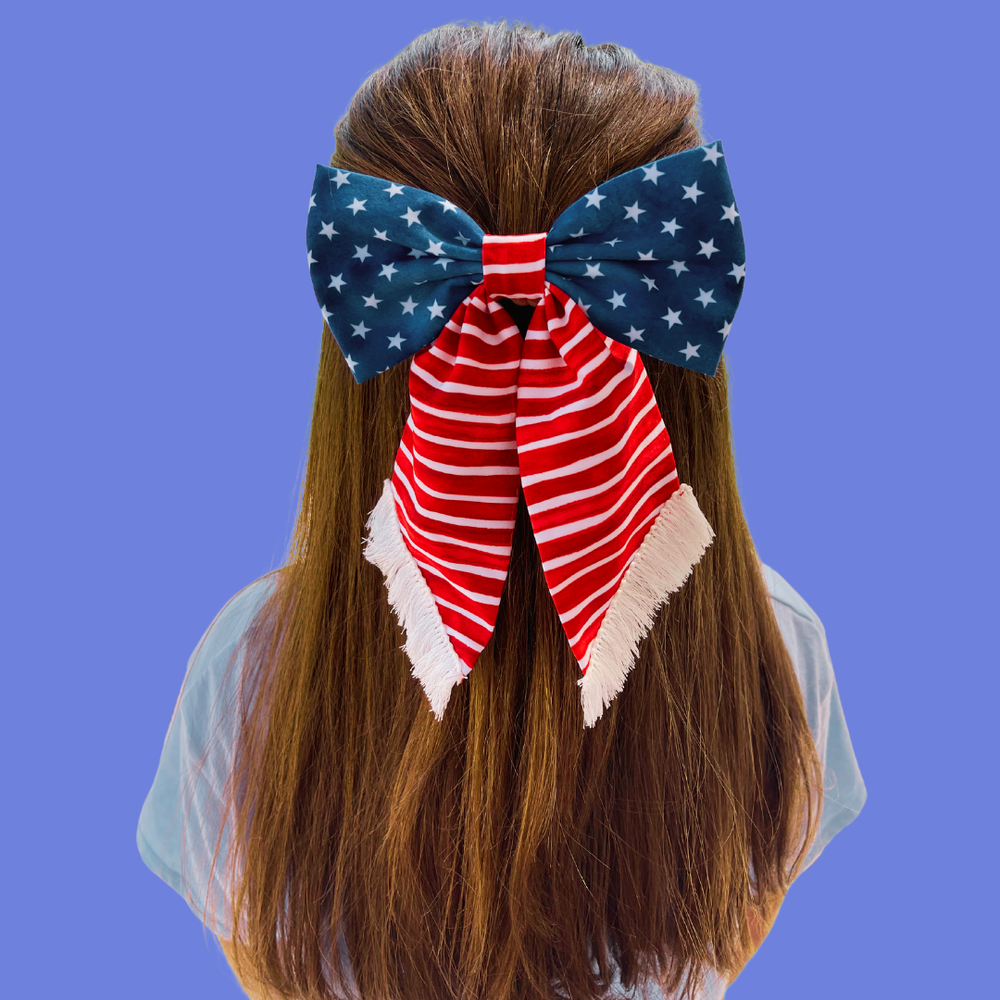 Patriotic Fringe Hair Bows