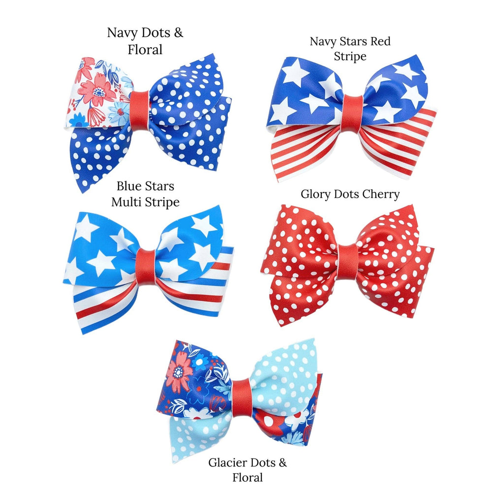 Patriotic Blues and Reds Patterns on Faux Leather Pinwheel Shaped Bows
