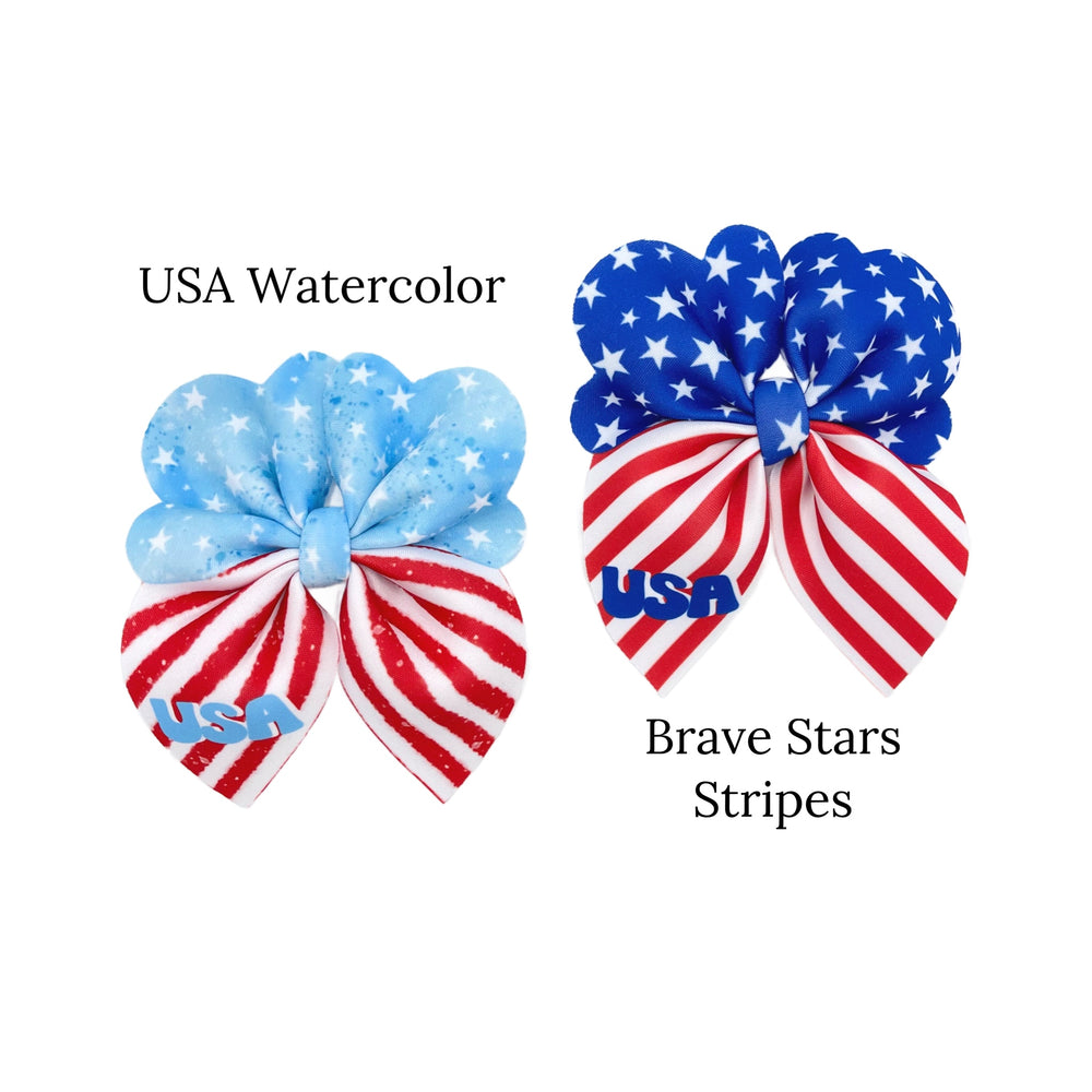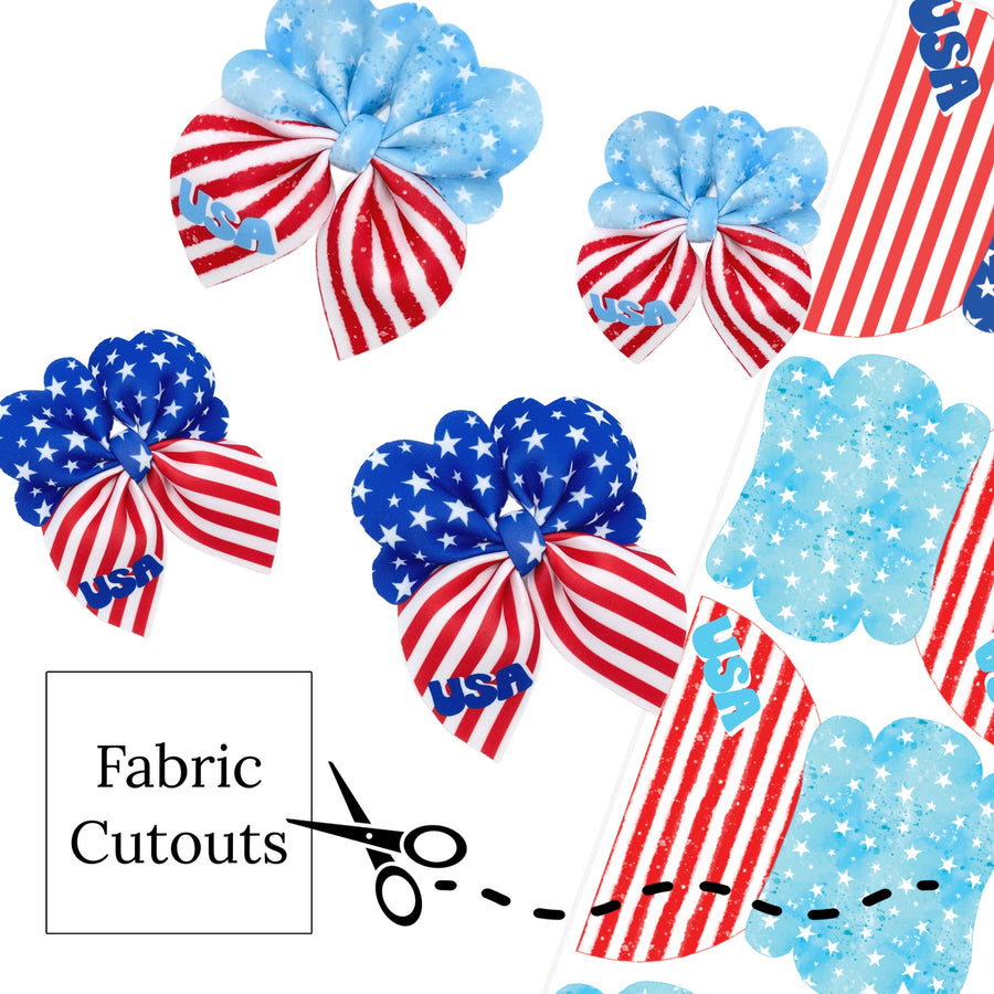 These 4th of July faux leather sheets contain the following design elements: split sheet with stars on the top section and stripes on the bottom sections. Our CPSIA compliant faux leather sheets or rolls can be used for all types of crafting projects.