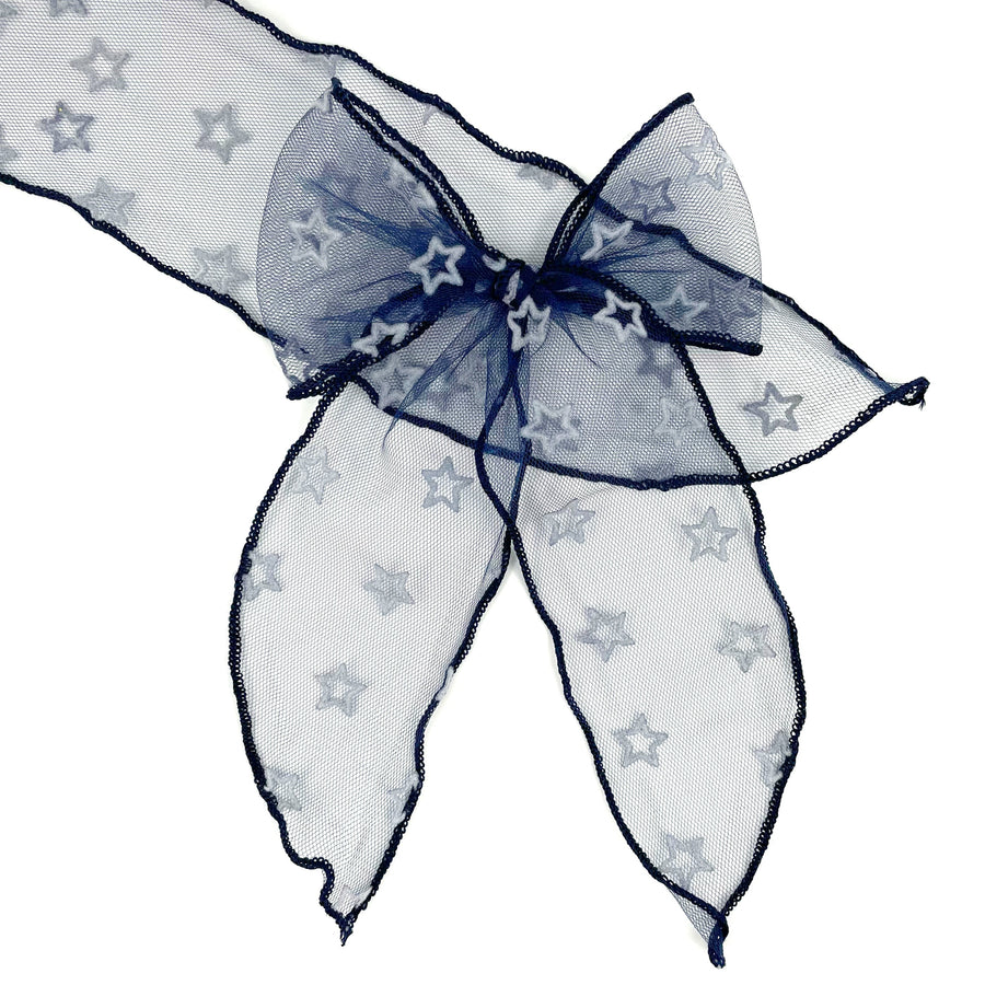 *SLIGHTLY FLAWED* Navy Stars Tulle JB Effortless Bow Strips - Large Serged Edge