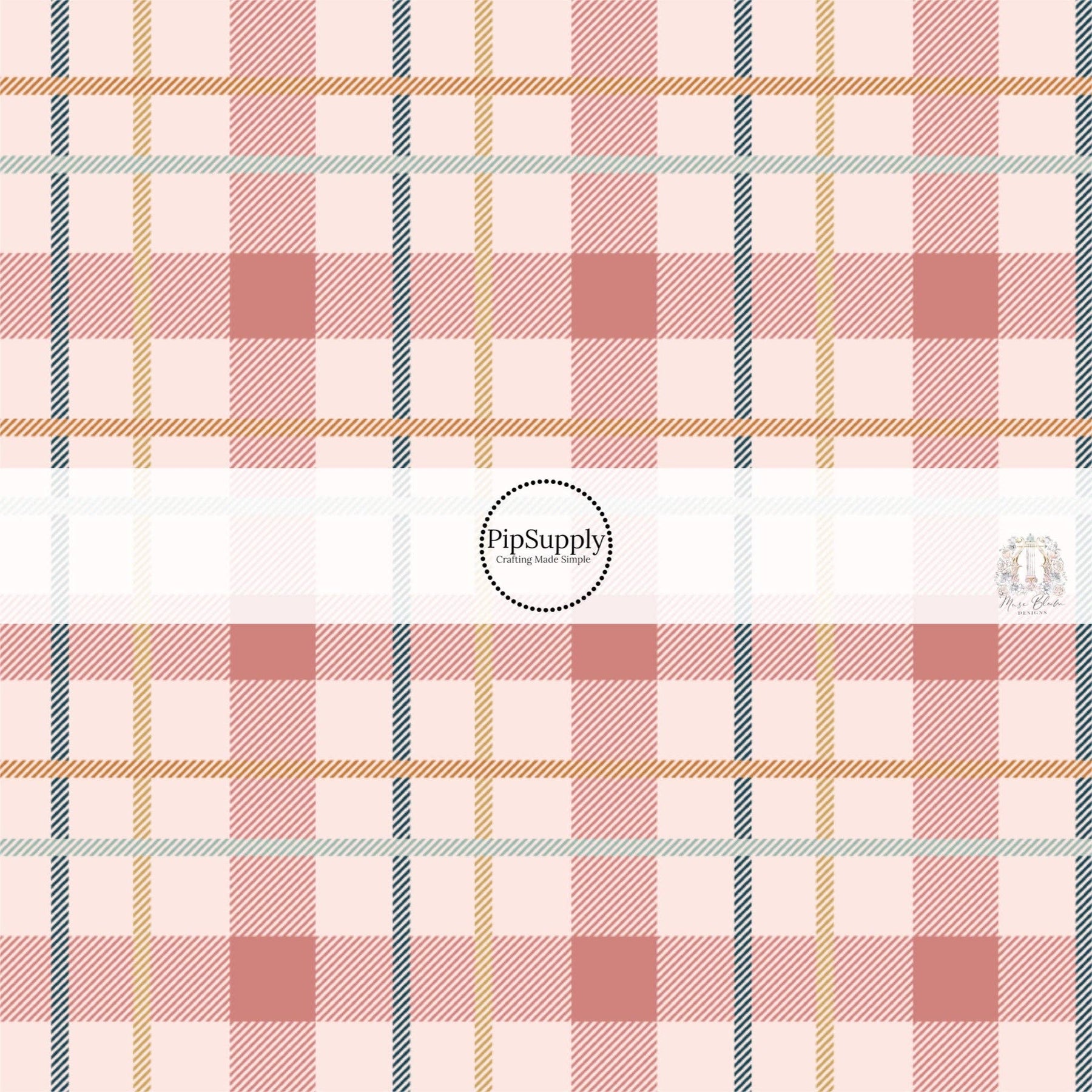 Pink and Blue Plaid on Light Pink Fabric by the Yard.