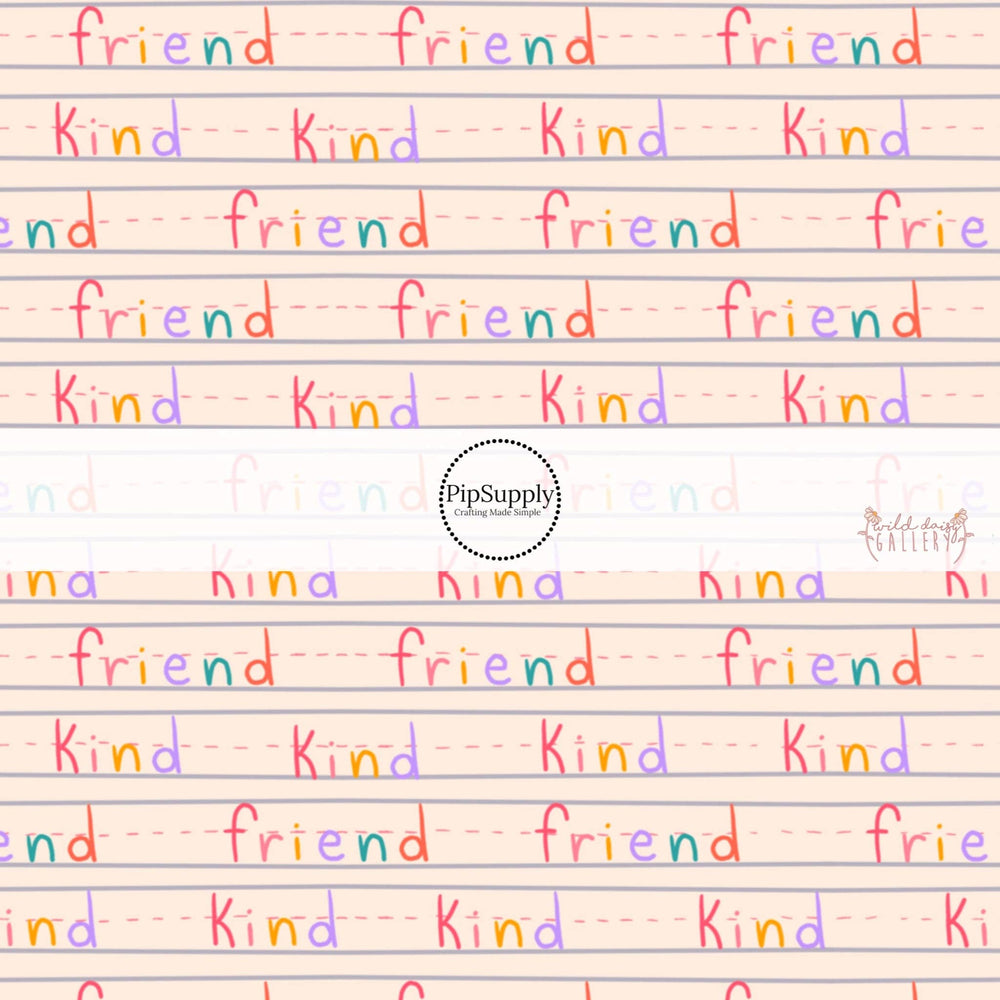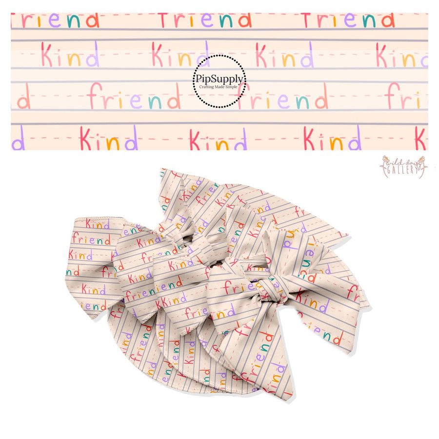Colorful "Kind" and "Friend" Words on Lined School Paper Hair Bow Strips