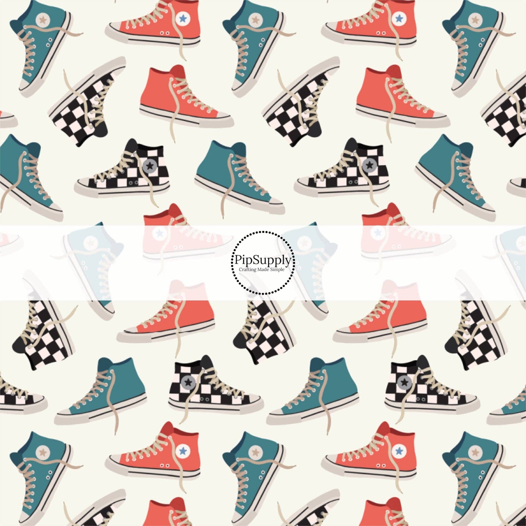 Red Blue and Checkered High Tops Hair Bow Strips