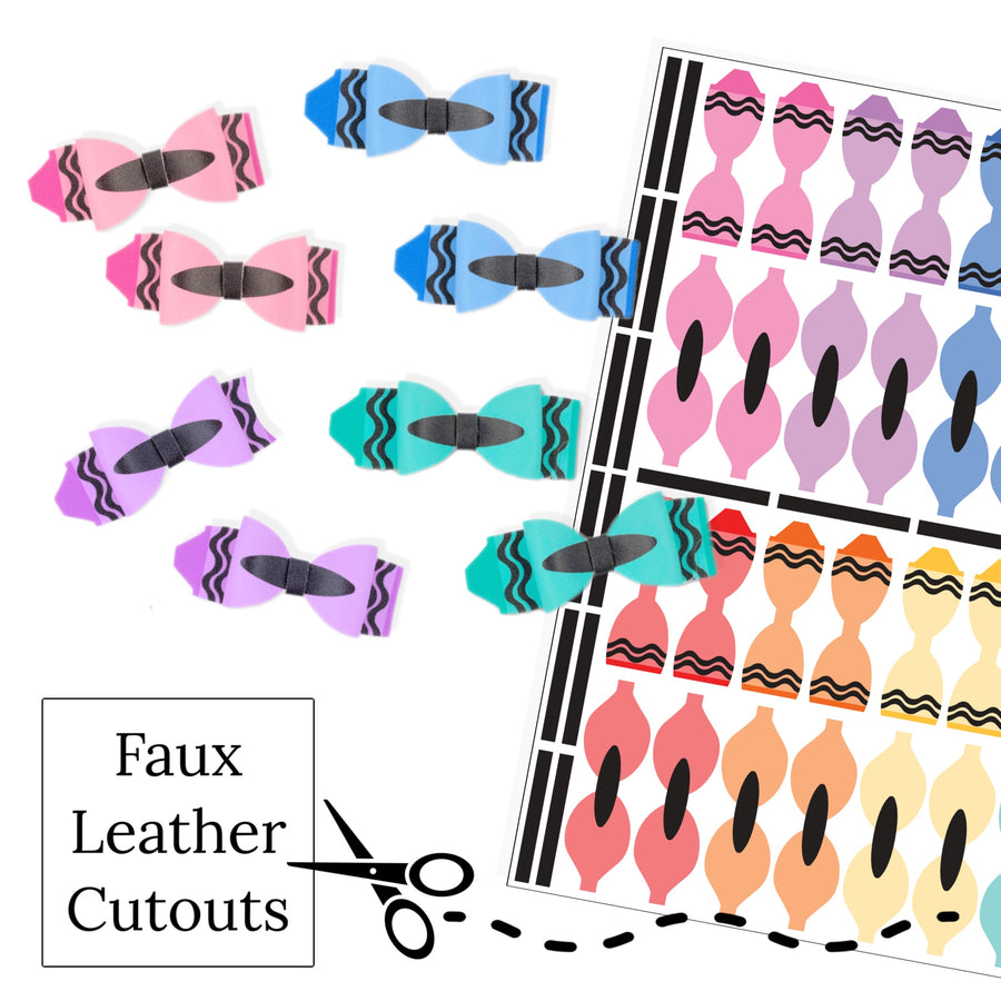 School Crayons Mini Piggie Faux Leather DIY Bow Cutouts