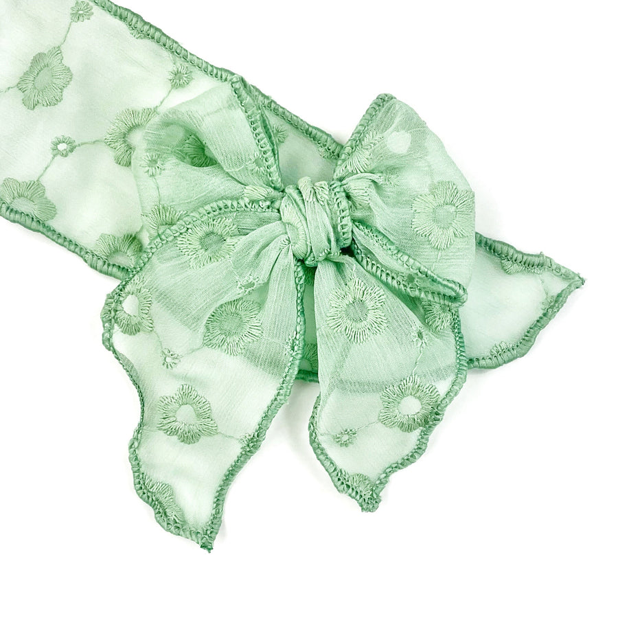 Sage Daisies Tulle JB Effortless Bow Strips - Serged Edge