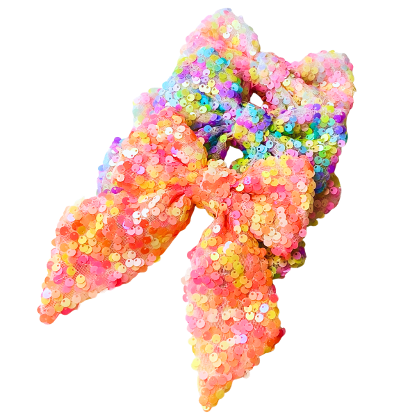Make every outfit sparkle with our Sequin Daydreams Hair Tied Bow with Clip. This statement rainbow sequin hair bow is designed to shine with vibrant, multicolor sequins that catch the light from every angle. Perfect for birthdays, holidays, photoshoots, dance recitals, and everyday glam moments.
