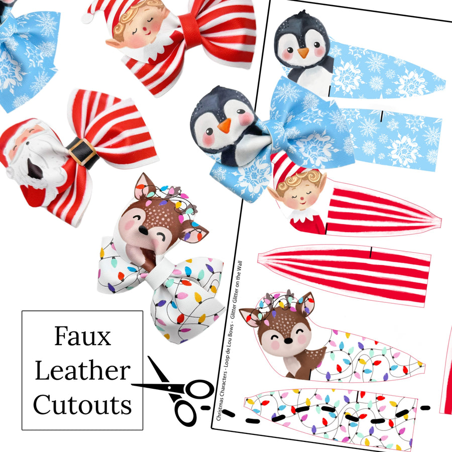 Fun Christmas Character Faux Leather DIY Hair Bows