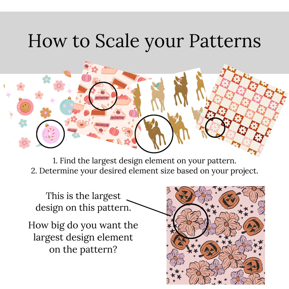 Step 4- Choose your desired pattern scaling. First, find the largest element in your pattern and enter the name of that element in the provided field. Next, enter the size you would like that element to be printed on your headbands in the provided field. Express your measurement in inches (i.e. .25” .5” .75” etc). *See product pictures for our sizing recommendations.