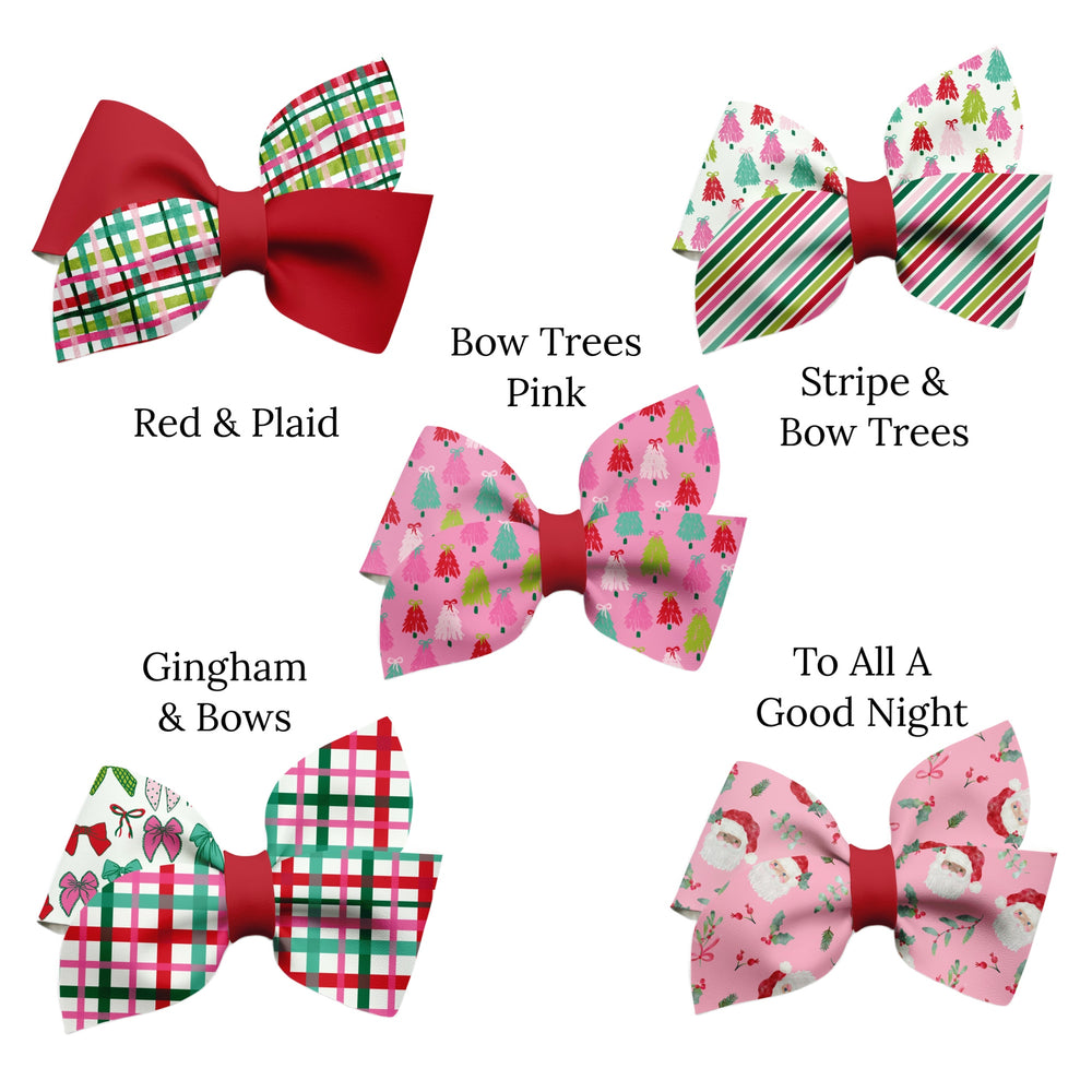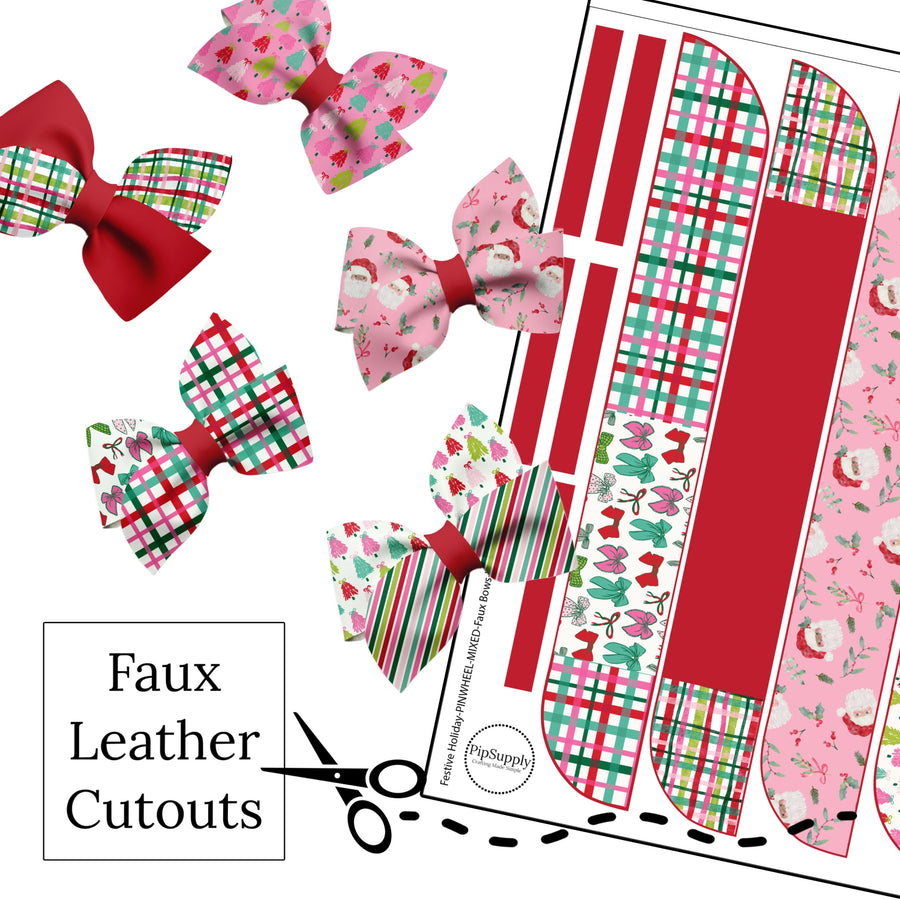 Pink, Red and Green Plaid and Winter Tree Faux Leather Pinwheel Bow Cutouts