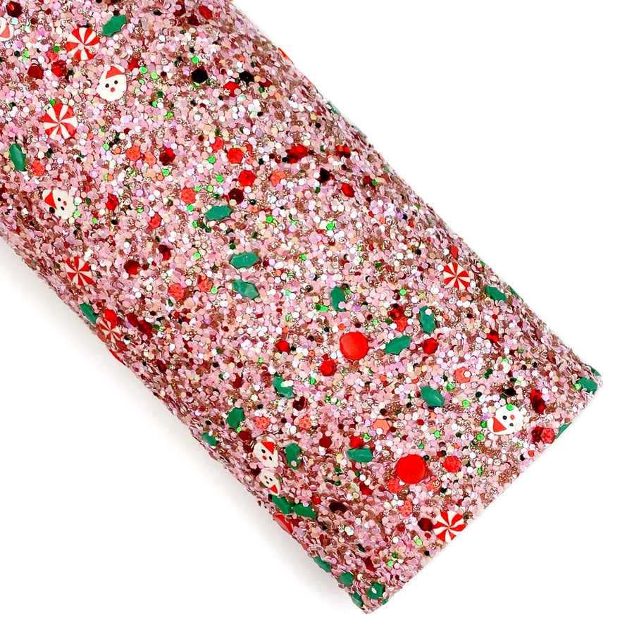 This pink Christmas glitter is pack full of pretty things! Hand sprinkled clays - Santa, peppermints, holly berries and holly leaves, this glitter is our top selling Christmas glitter! It just has all the right details with some so much dimension to compliment all your holiday craft projects!