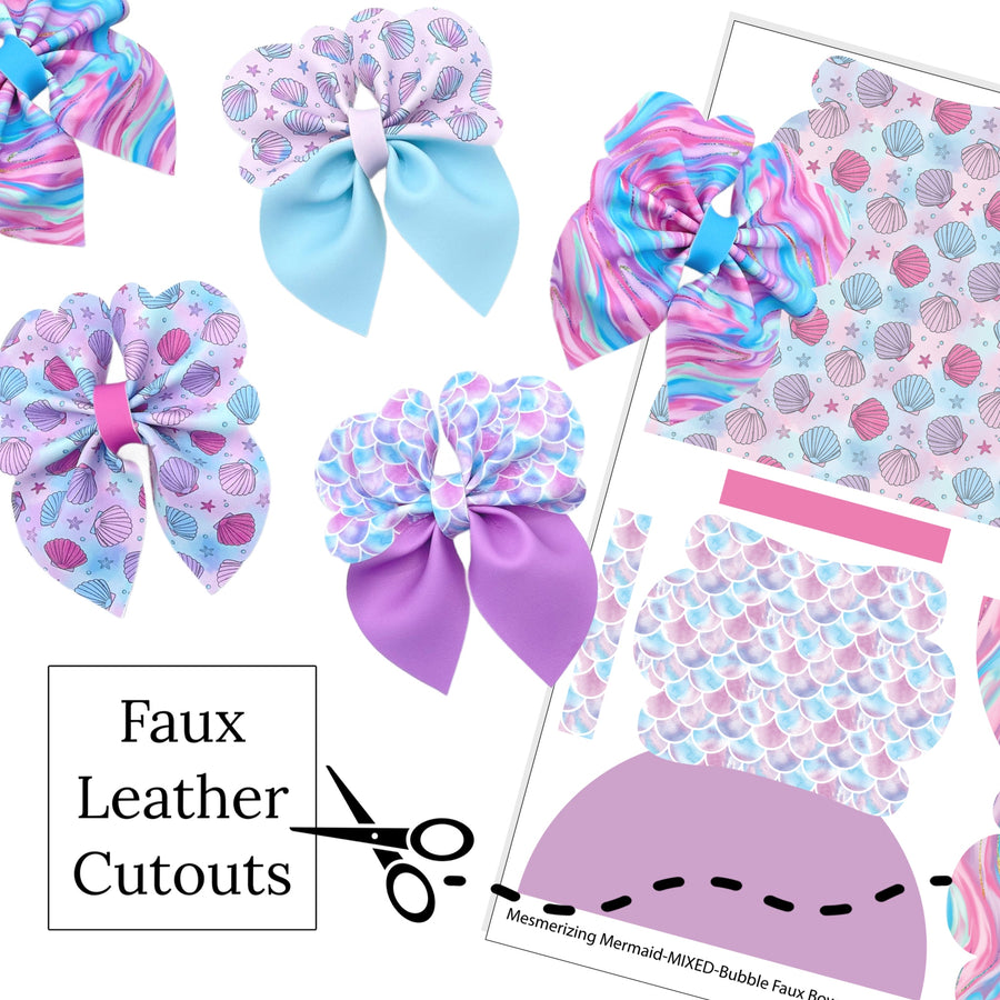 Mermaid Shells and Scales Themed Bubble Faux Leather Hair Bow Cutouts