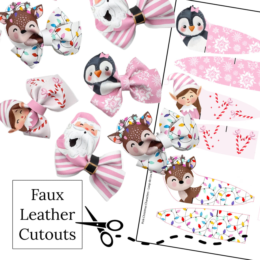 Pink Themed Christmas Character Faux Leather DIY Hair Bows