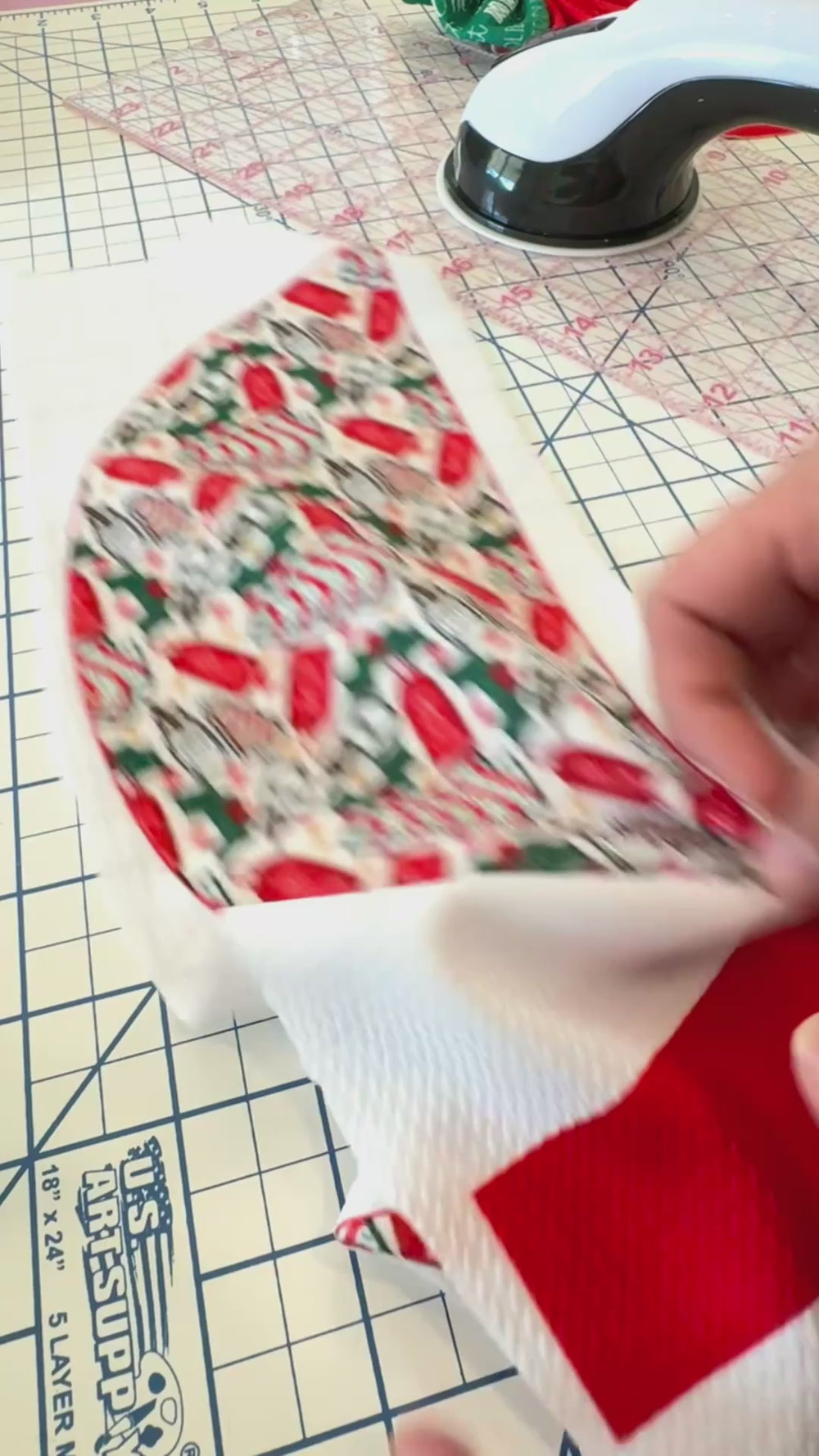 This holiday fabric by the yard features hearts on pink and cream checkers. This festive pattern fabric can be used for all your sewing and crafting needs!