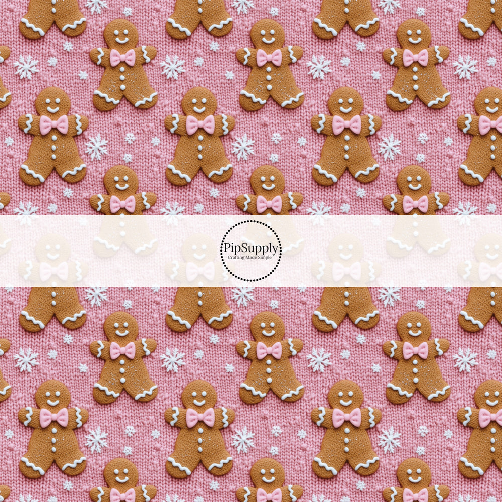 Pink Holiday Sweater Gingerbread Hair Bow Strips